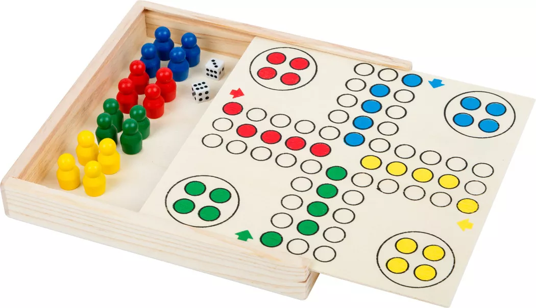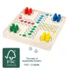 This practical Ludo game made of FSC® 100%-certified wood offers guaranteed big fun on the smallest play surface. All the game pieces can be stored in the wooden box under the extendable game board.
