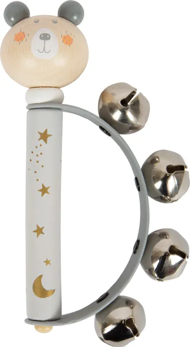 Четыре бубенца на гибкой пластиковой арке и удобная для захвата деревянная рукоятка - эта милая игрушка развлечет вашего малыша и будет способствовать развитию слухового восприятия.